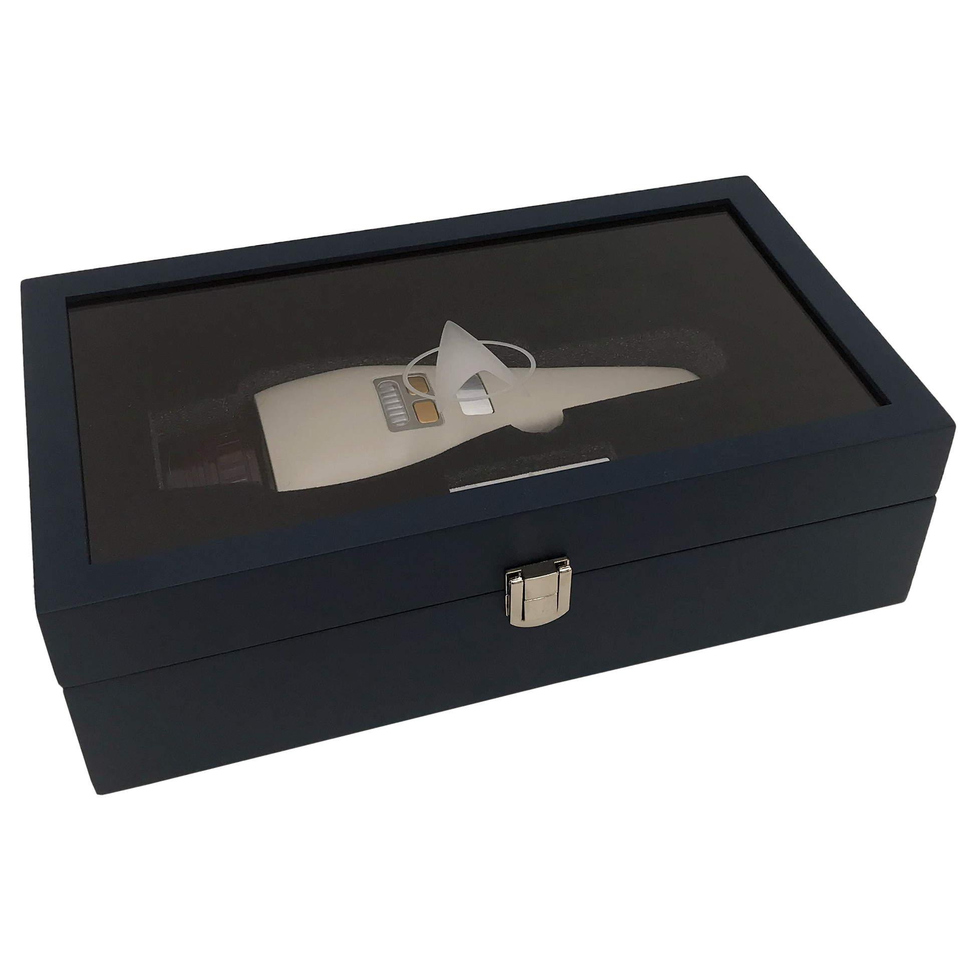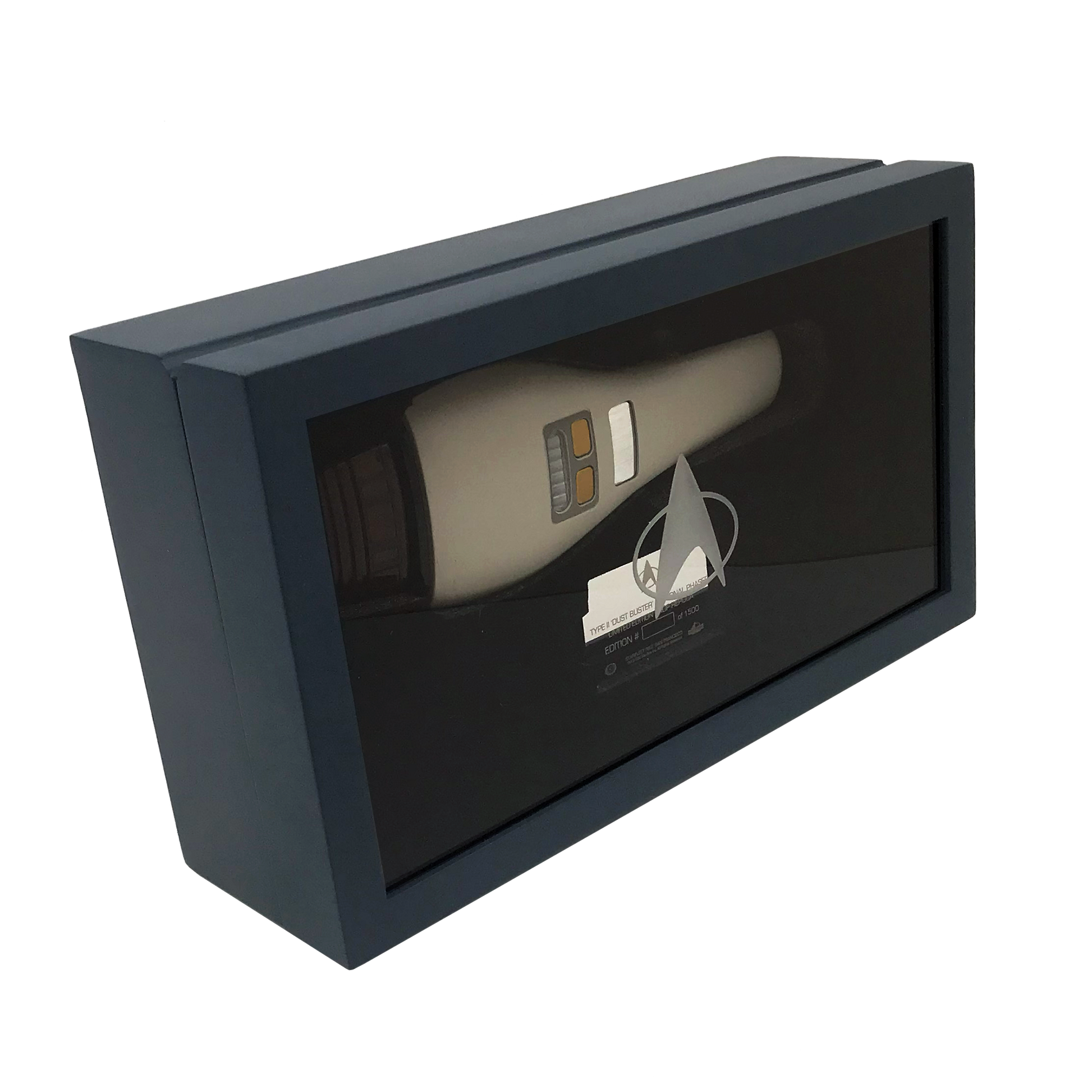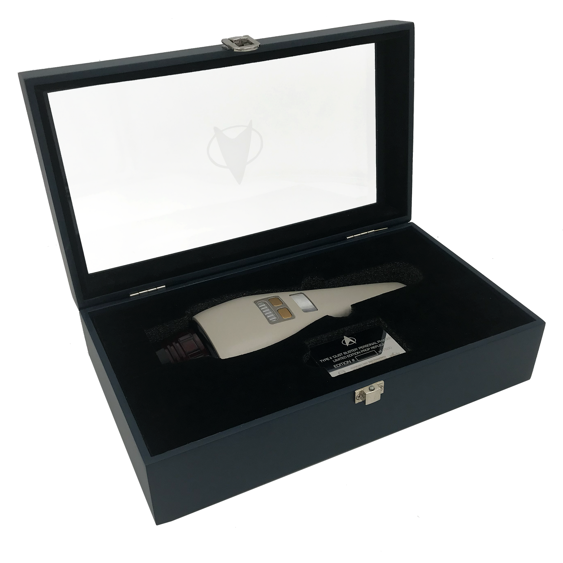 The iconic Type-2 Phaser, seen in Star Trek: The Next Generation, was issued to Starfleet personnel in the early 2360’s. Compared to the Type-1 Phaser, it is larger and more powerful. Referred to as ‘The Dust Buster’ by production, this sleek and free-flowing weapon was intentionally designed to differ from previous Starfleet props. From simple ‘stunt’ props to advanced ‘hero’ props with functioning electronics, a variety of Dust Buster Phaser replicas were created. This museum-quality replica is a blended execution of the best elements and electronics, accurately simulating the on-screen special effects. Limited edition and numbered, each replica comes in a wooden presentation case and includes a metal plaque and certificate of authenticity.